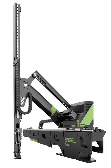 恩格尔e-pic是最新加入恩格尔机器人系列的产品。在为期四天的交易会上,它将从模具中移除尺寸为160×70×90毫米的盒子,并对这些盒子进行卸载。为了实现机器性能和经济效益的最大化,恩格尔研发了这款可进行拾放操作的机器人。最新的运动学观点也为这一设计起到决定性作用——将线性运动与旋转臂结合起来,从而减少占用空间。此外,机器的高性能也受益于恩格尔使用的重量优化部件。这样,伺服电机驱动的机器人能在最短的周期内完成拾取动作,并且只有较低的能耗需求。恩格尔e-pic机器人一年消耗的能源,只占等同大小的线性机器人消耗能源的一半甚至更少。